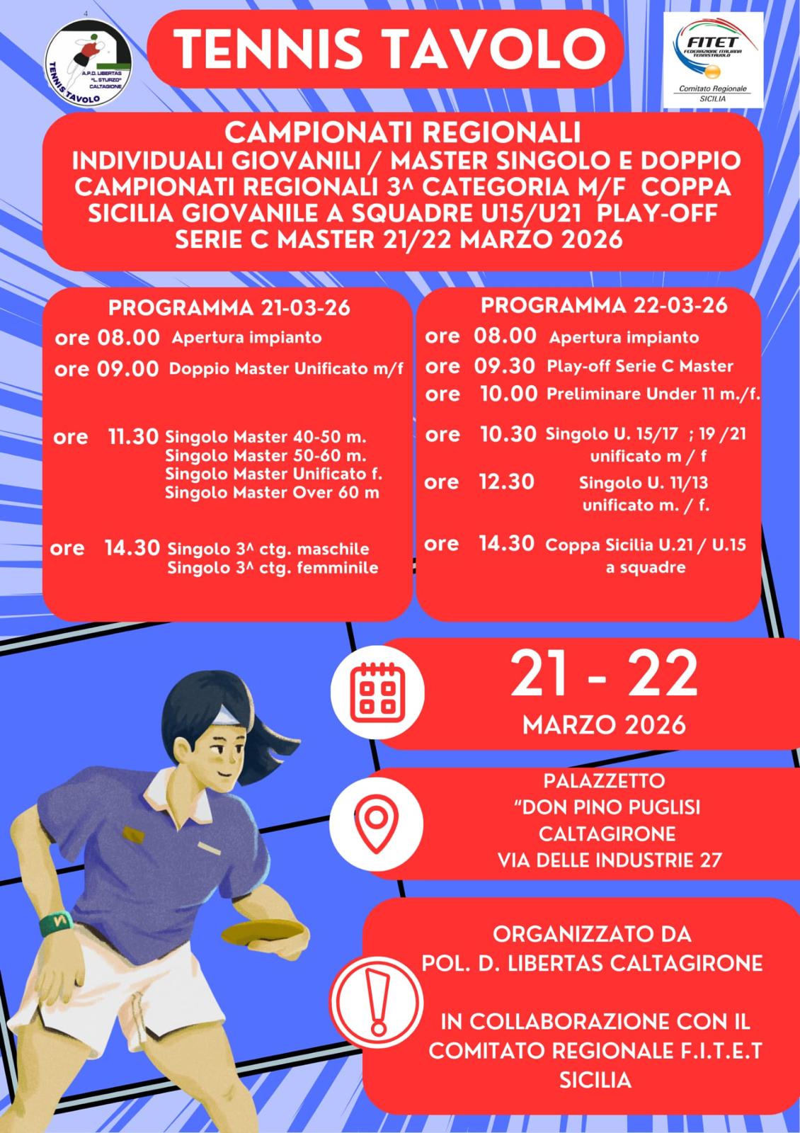 Il mondo del sport siciliano si mobilita per garantire un futuro più solido agli atleti master. In una recentissima delibera, il Presidente Regionale della Federazione Italiana Tennistavolo (F.I.T.E.T) Sicilia ha preso misure urgenti per risolvere una lacuna normativa che rischiava di compromettere la giusta assegnazione dei punteggi ai Campionati Regionali Master.